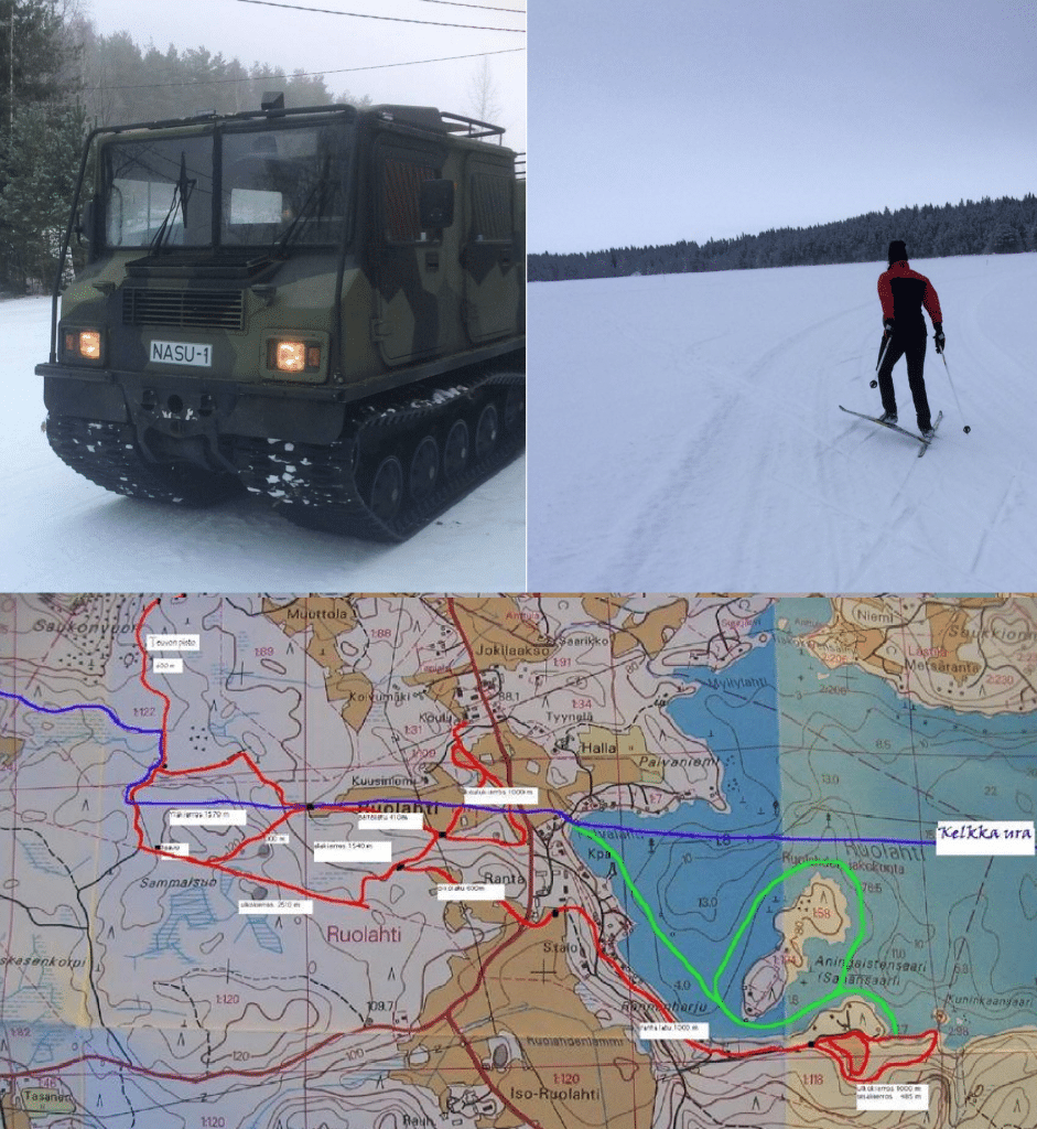 Hiihtolatuja löytyy sekä perinteiseen että vapaaseen hiihtotapaan säiden salliessa 10-12 km. Makkaranpaistolaavu matkan varrella! Jos retki laavulle makkaranpaistoon houkuttelee, mutta suksi ei luista, voidaan retki myös tehdä vaikkapa latukone-Nasulla, jolla toteutuvat henkilökuljetukset 1+15 henkilöön asti.