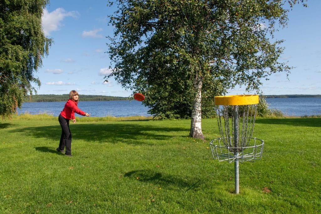 Frisbeegolfia Kuhmoisten keskustassa.